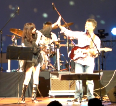 大村ミュージックフェスタ無事終了 音楽日記 2012年09月24日 大村ミュージックフェスタ、多数のご来場ありがとうございました♪ノリノリで演奏出来ました♪マイケルの「SmoothCriminal」で帽子パフォーマンスも決まり☆帽子はDejimaQuartetのパーカッション、ラテやんさんから勝手に拝借アンコールで「Always」 ギターのゆー坊と愛のデュエットも成功♡DejimaQuartet かわいいゆかちゃん♪ [2回]